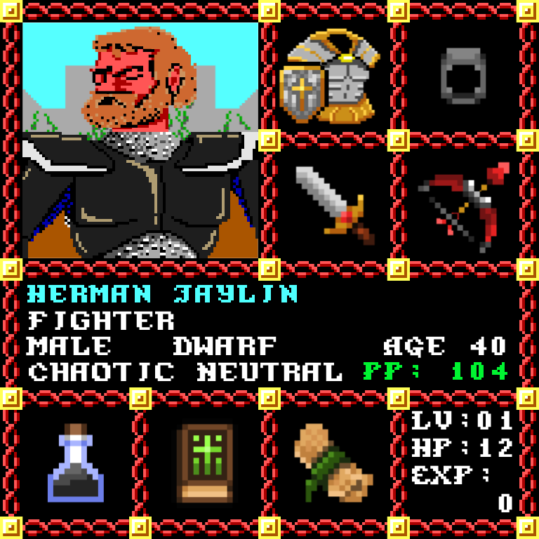 Herman Jaylin is a Male Dwarf, born to be a Fighter. Since his birth, for the last 40 years, his alignment has been Chaotic Neutral and he has been honing his skills with the Broadsword +4. He also carries the following: [Potion of Invisibility ] [Phlan Journal Entries 1-15] [Scroll of Sleep x50] > > > Herman Jaylin is part of the Genesis Series of the Players Guild NFT Pool of Radiance Tribute.